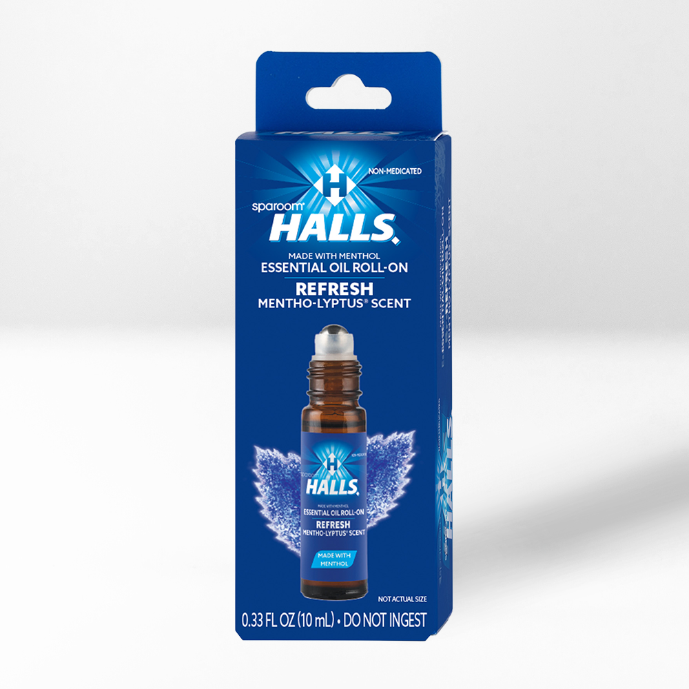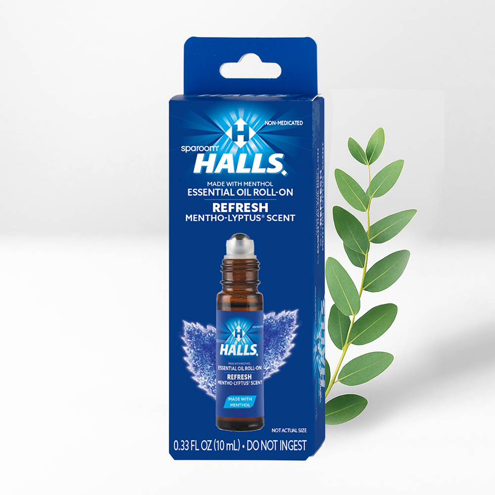 The sparoom® HALLS® Mentho-Lyptus® Aromatherapy Roll-On: Inspired by the classic HALLS® flavors, this roll-on combines 100% pure essential oil with menthol for a cool, invigorating aroma. Ideal for enhancing your daily rituals with a refreshing sensory touch.