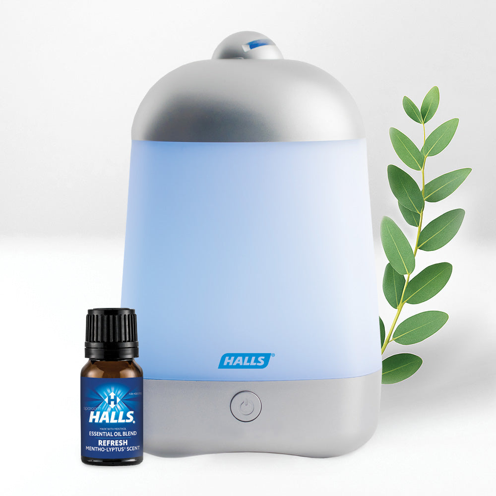 HALLS® Mini SpaMist Essential Oil Diffuser + 5ml Mentho-Lyptus Oil
